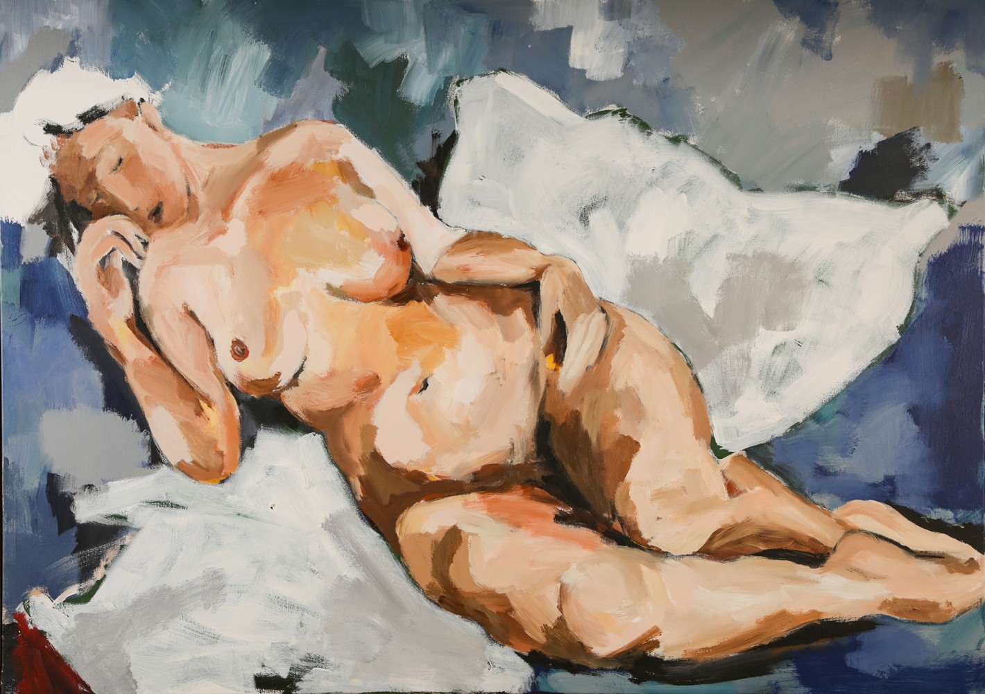 Paula Brinkhaus: «Ich mag üppige Körper in warmen Tönen. Sie sollen die Leinwand nähren und vollleibig posieren. Vor allem die erkennbaren Körperdetails sind mir besonders lieb.»