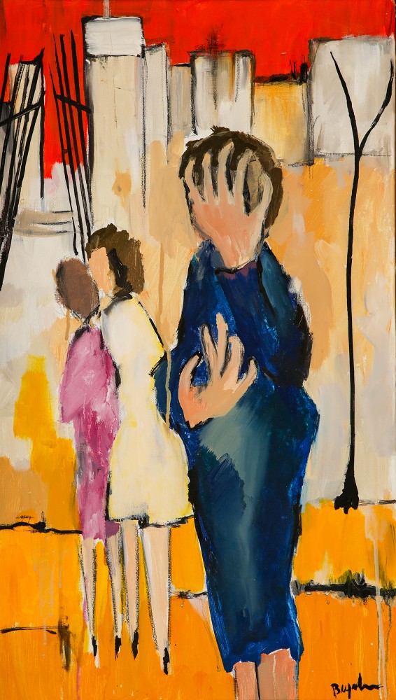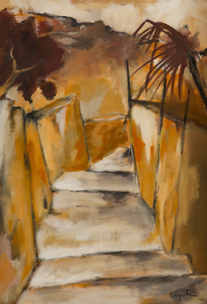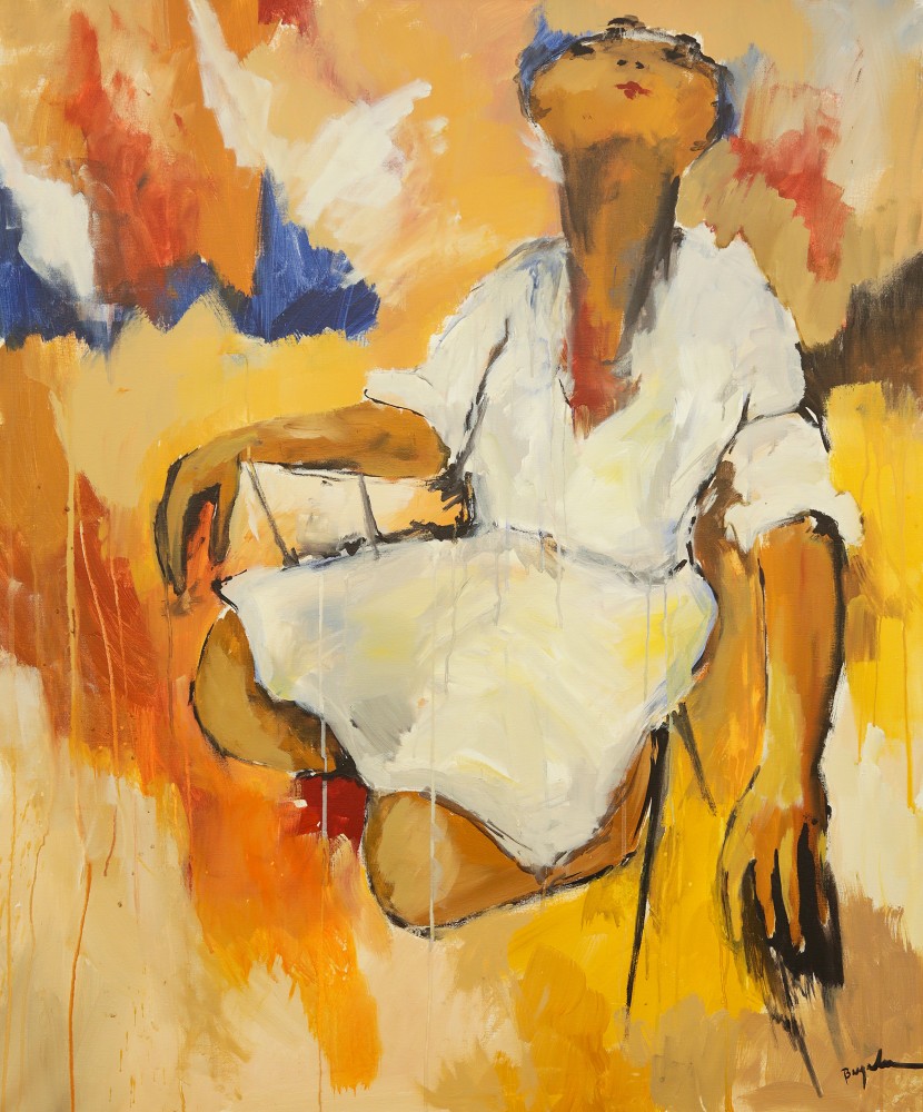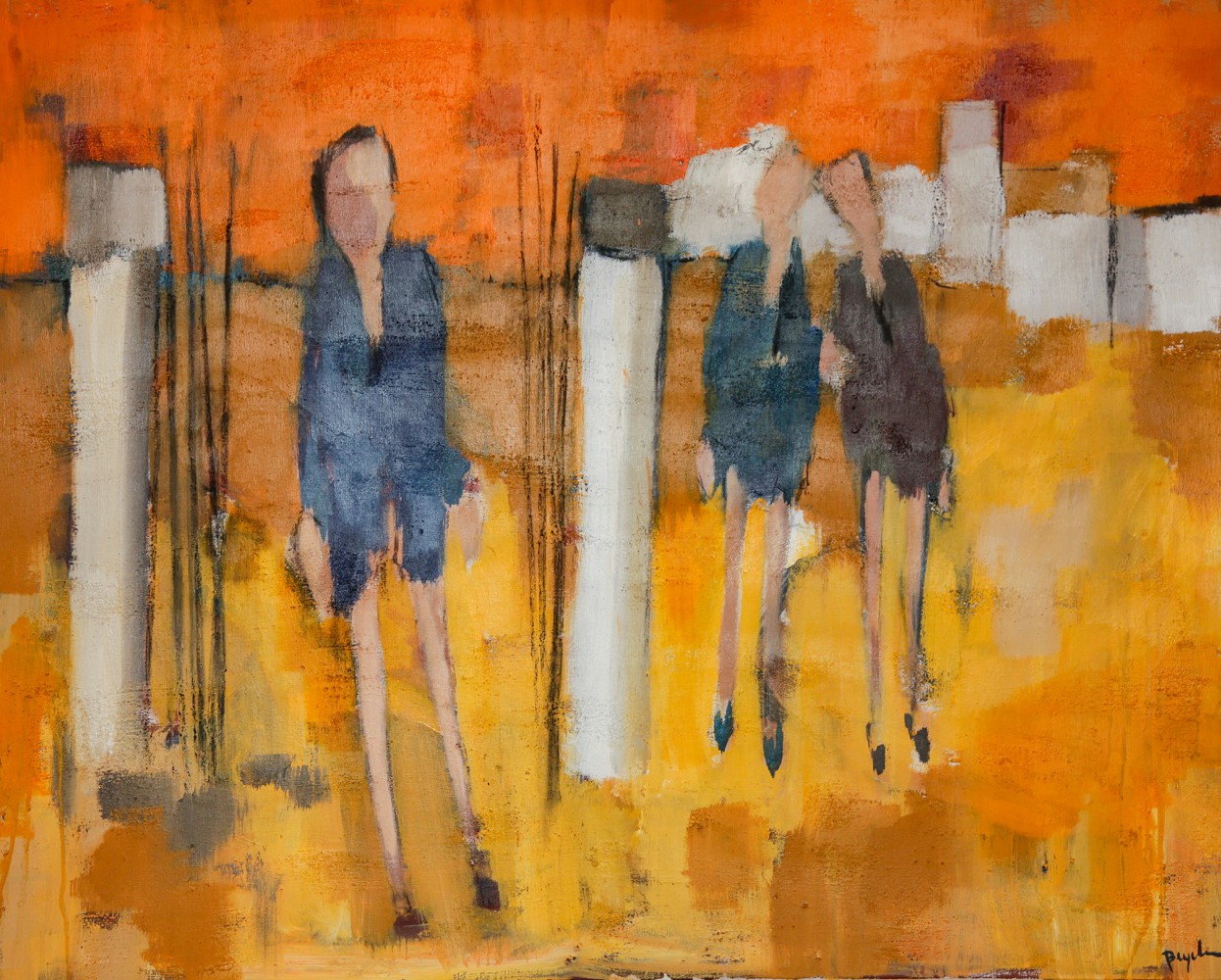 Bis vor ein paar Jahren malte Paula Brinkhaus vorwiegend Landschaften. Häuser mit Bäumen und Hügeln. Heute bevorzugt sie menschliche Silhouetten, Gesichter und Ausdrücke.